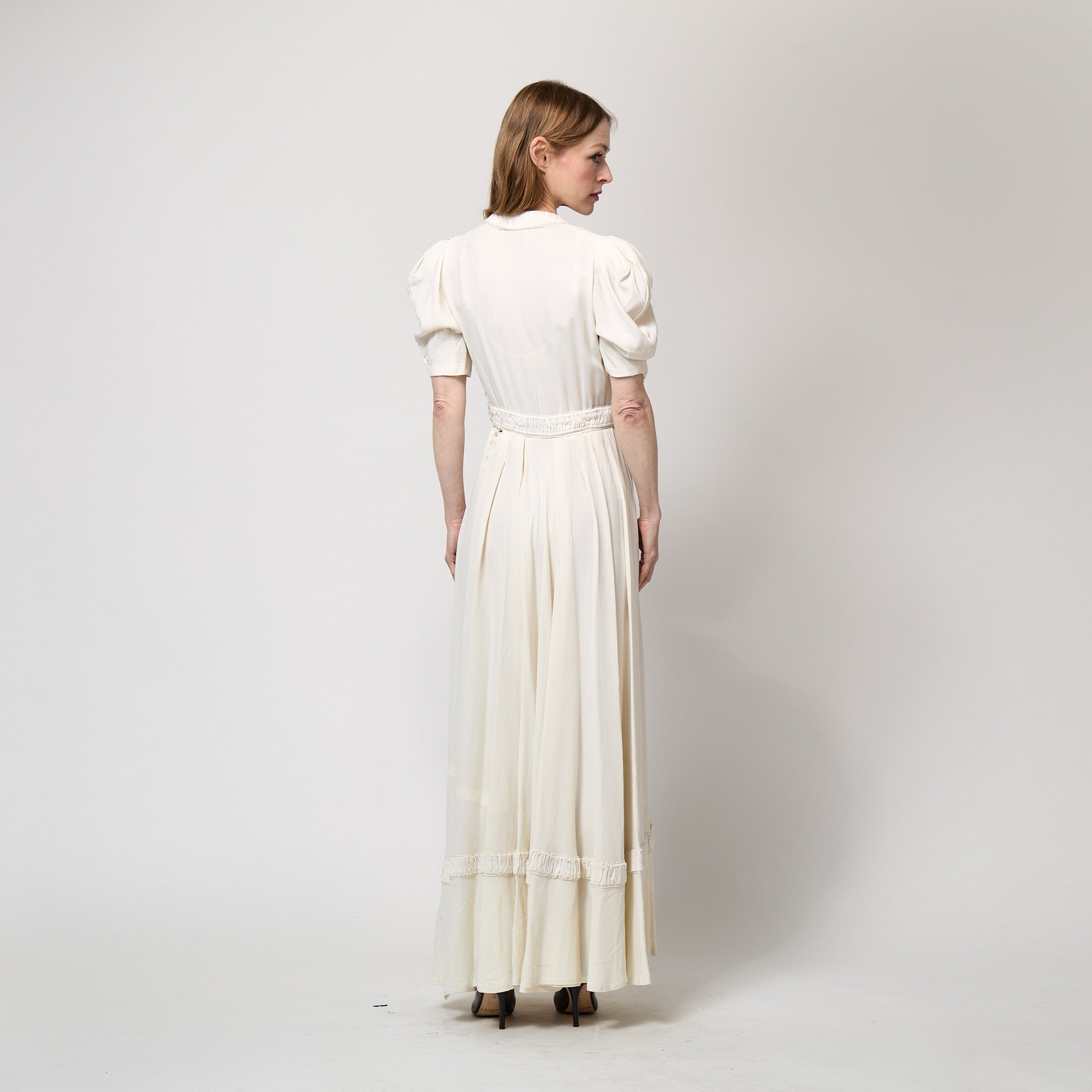 Late 1930s Early 1940s White Crepe Wedding Dress