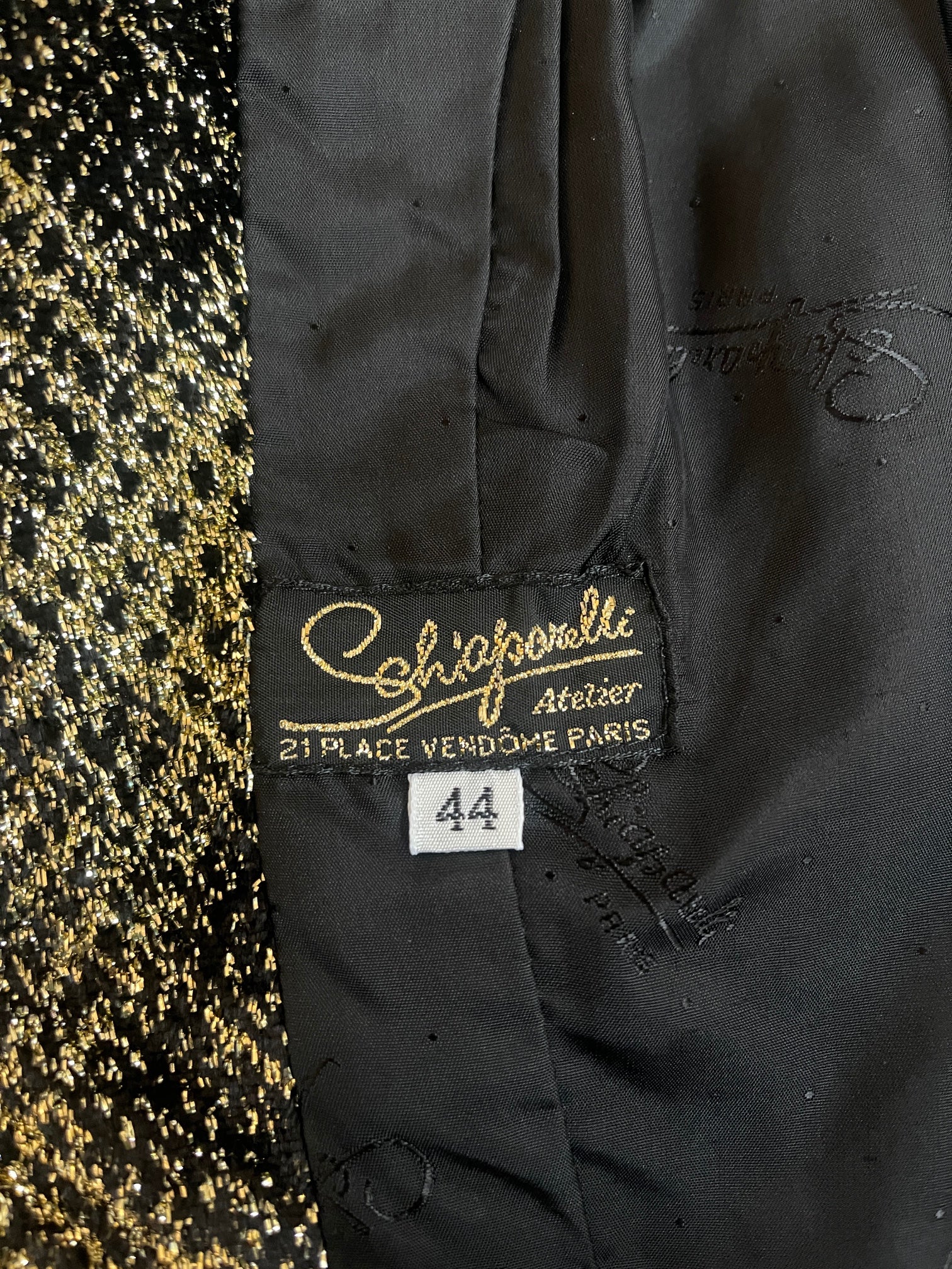 1980s Schiaparelli Black Chenille Velvet and Gold Lurex Jacket