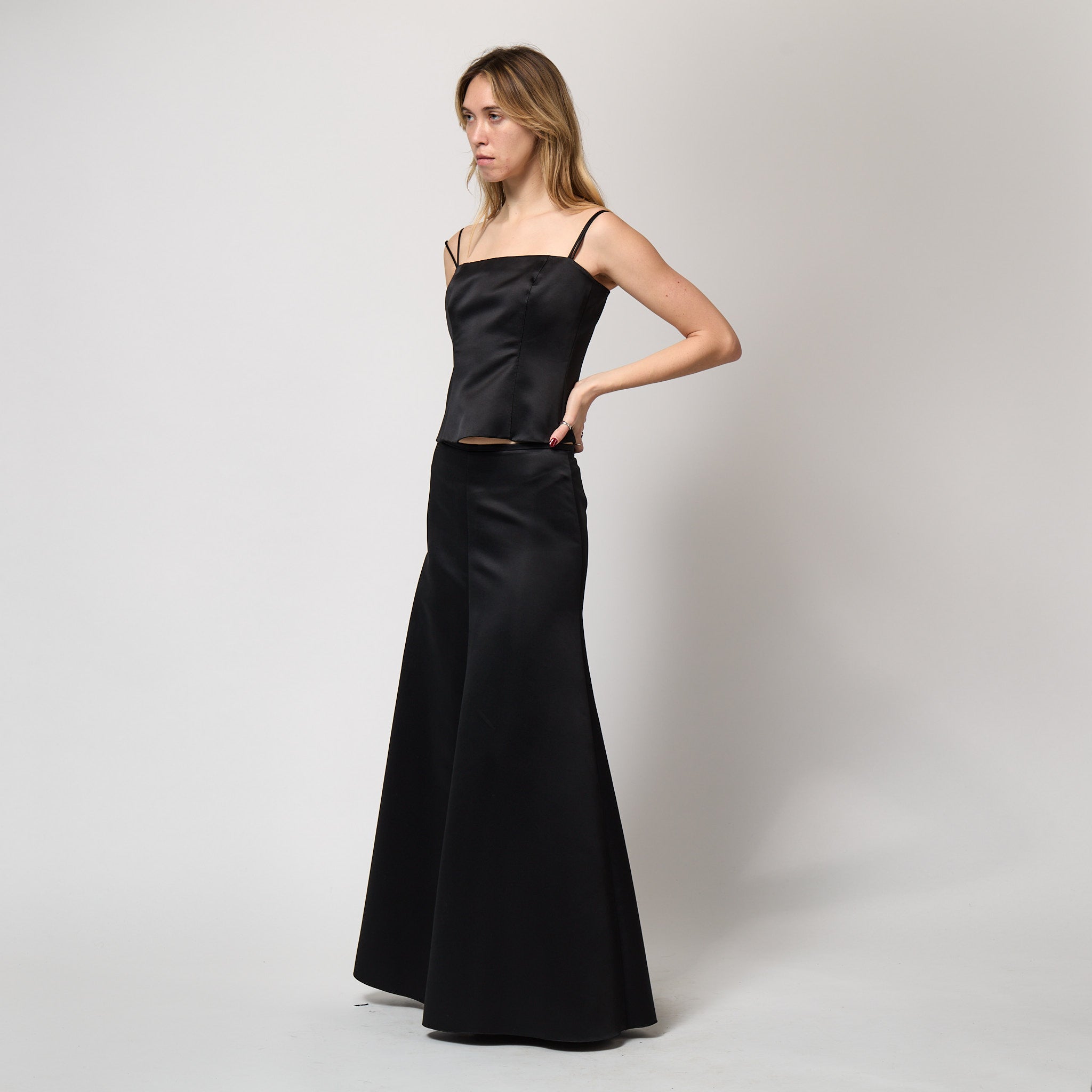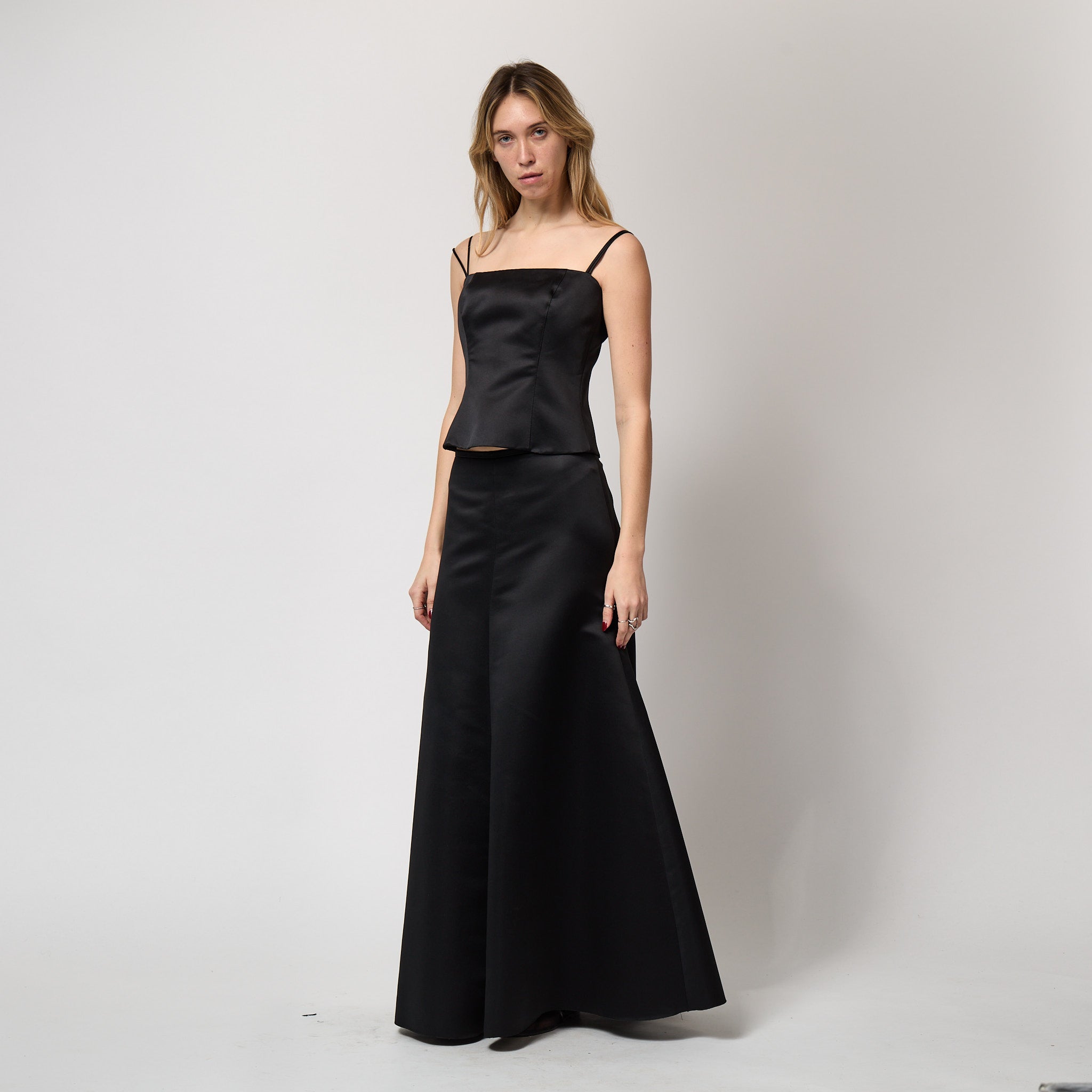 2006 Armani Collezioni Black Satin Bustier Top and Maxi-Skirt