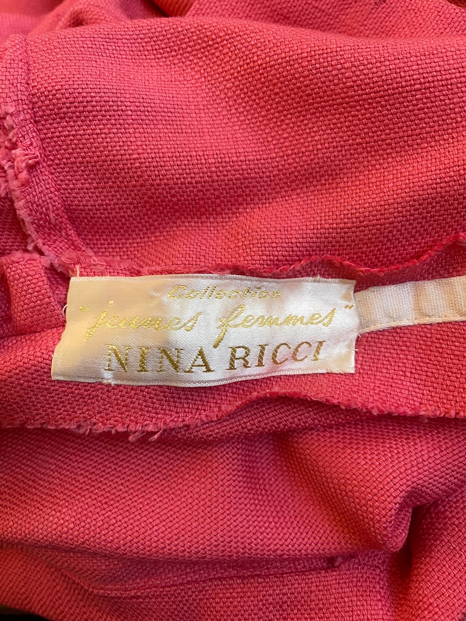 Born in Italy, Nina Ricci moved to France as a teenager and became a dressmaker. She spent the early years of her career designing for various fashion houses before setting up her eponymous house in 1932 when she was in her early-50s. She retired from design in the 1959 and handed the reins over to Belgian designer Jules Francois Crahay who created this dress in the early 1960s before leaving for Lanvin in 1964. His bell-skirted suits and small-waisted dresses were described as having "charm," and described as the "youngest, most feminine thing in Paris."