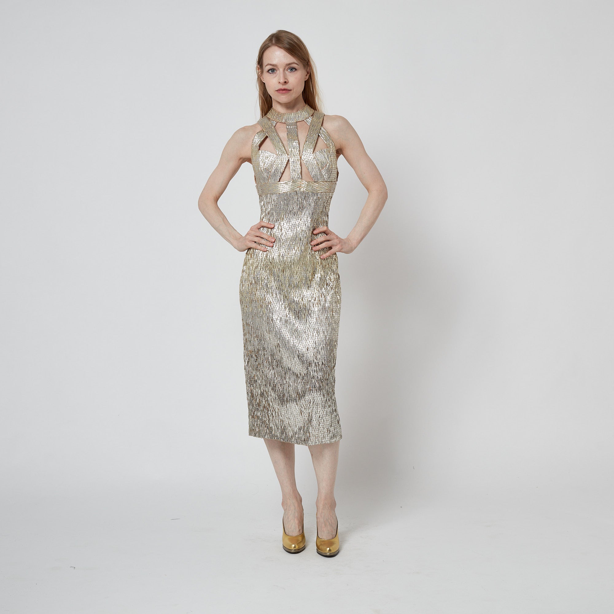 2016 Julien MacDonald Runway Champagne Paillette Cage Bodycon Dress