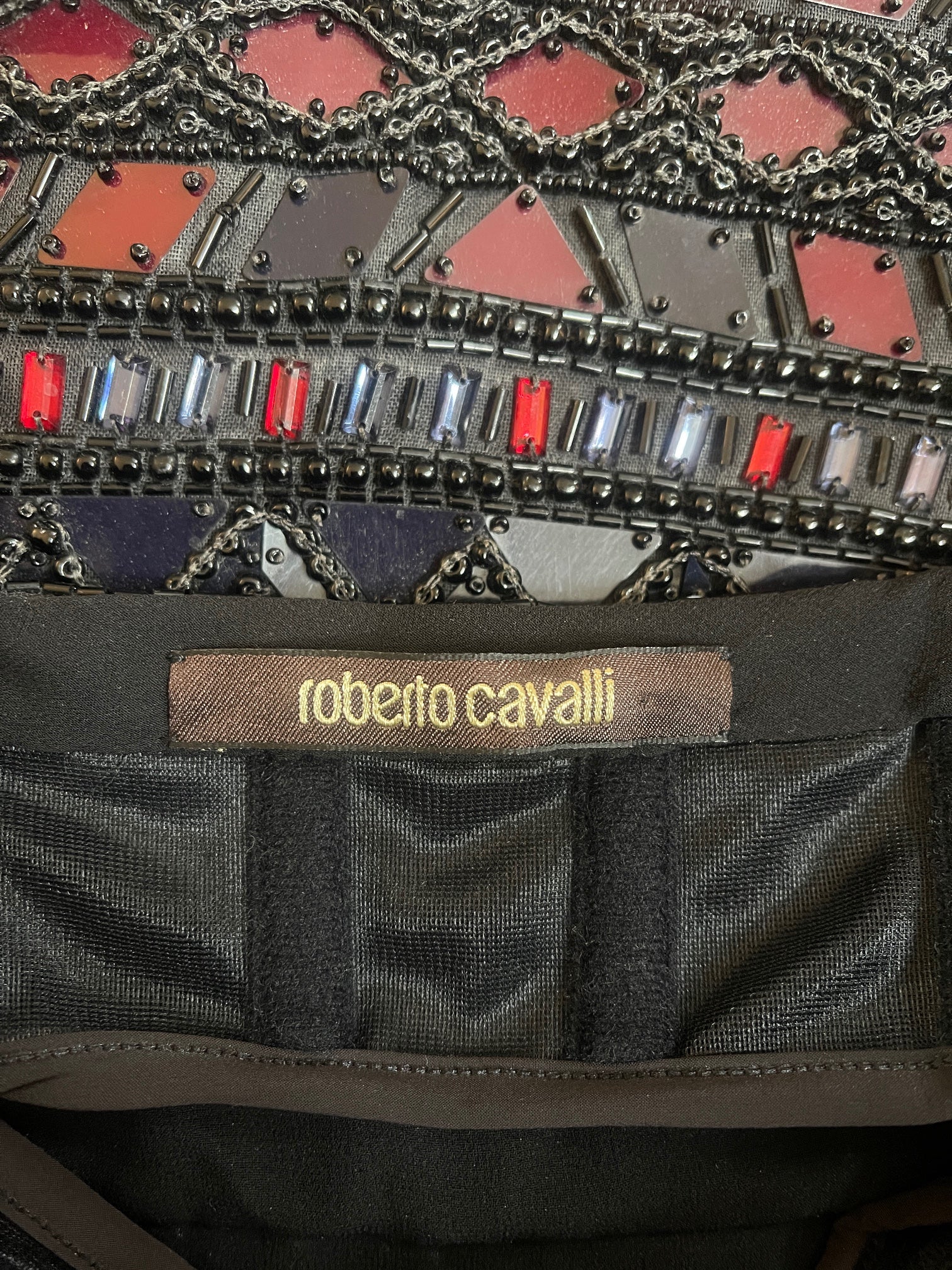 2012 Documented Roberto Cavalli Ombré Black Red Beaded Mini Dress