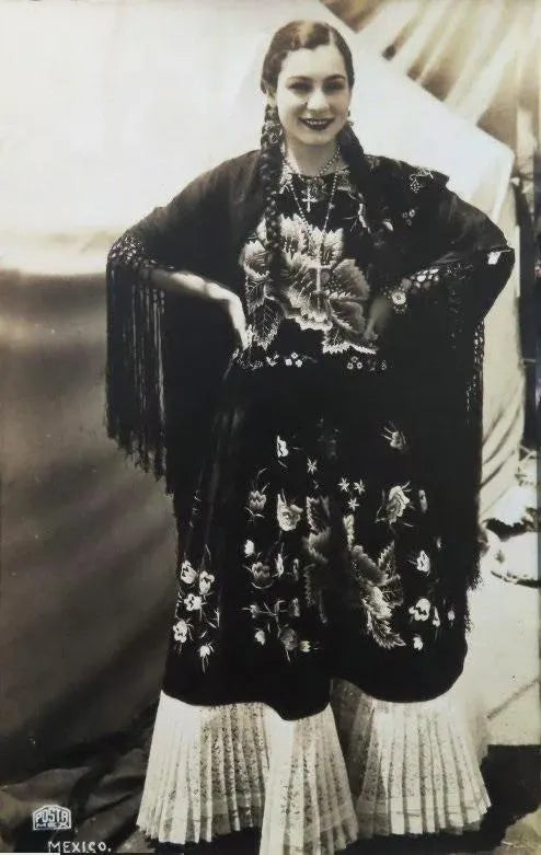 1940s Chiapas Black Net Maxi-Skirt with Heavy Floral Embroidery