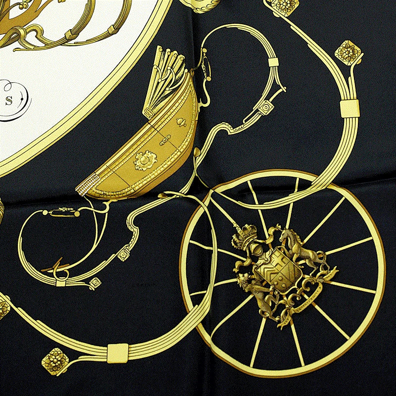 1974 Hermès Black “Springs” by Philippe Ledoux 90cm Silk Twill Scarf