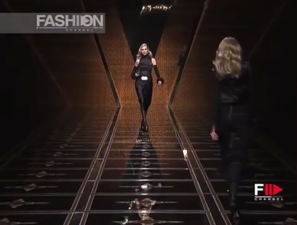 This elegant Valentino evening dress walked the runway as look 40/74 in the Fall 2007 show, one of Valentino Garavani’s final shows as creative director before he retired in 2008. Tailored from a luscious black silk-mix satin giving a liquid look to the dress. It has a graceful sleeveless, column construction with a high neckline. The detailing across the front takes its lead from the evening gowns of the 1940s. Art Deco detailing abounds, whether in the ruched panels of fabric which cross the torso, the angular hems of the panels which make up the body of the dress, or the huge glistening silver-tone brooch, studded with rhinestones, which forms a clasp on the front of the gown. Unlined. It fastens down the back with a long hidden tonal black zip. The dress still has the original tags attached, which reveal that it retailed at Bergdorf Goodman for $5,500 + taxes nearly 20 years ago. A comparable dress today would cost over $15,000.