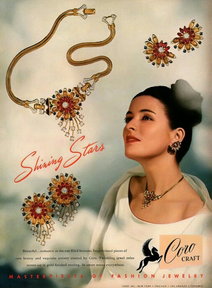 All pieces are in excellent vintage condition, with the tiniest bit of wear to the reverse - not visible when worn. We have attached a few examples of advertisements for very similar Coro jewellery from the period - circa 1947.