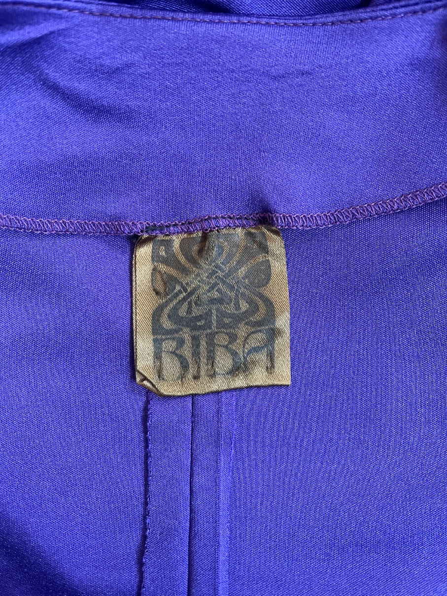 This desirable 1970s Biba dress is presented in superb vintage condition. Tailored from a Cadbury's purple jersey, it has held its colour and is as vibrant as the day it was made, over 50 years ago. This dark gold fabric label was the second Biba label and only in use from 1970 to 1972. It coincides with the previous owner's history that she bought it for her 18th birthday party in 1972!