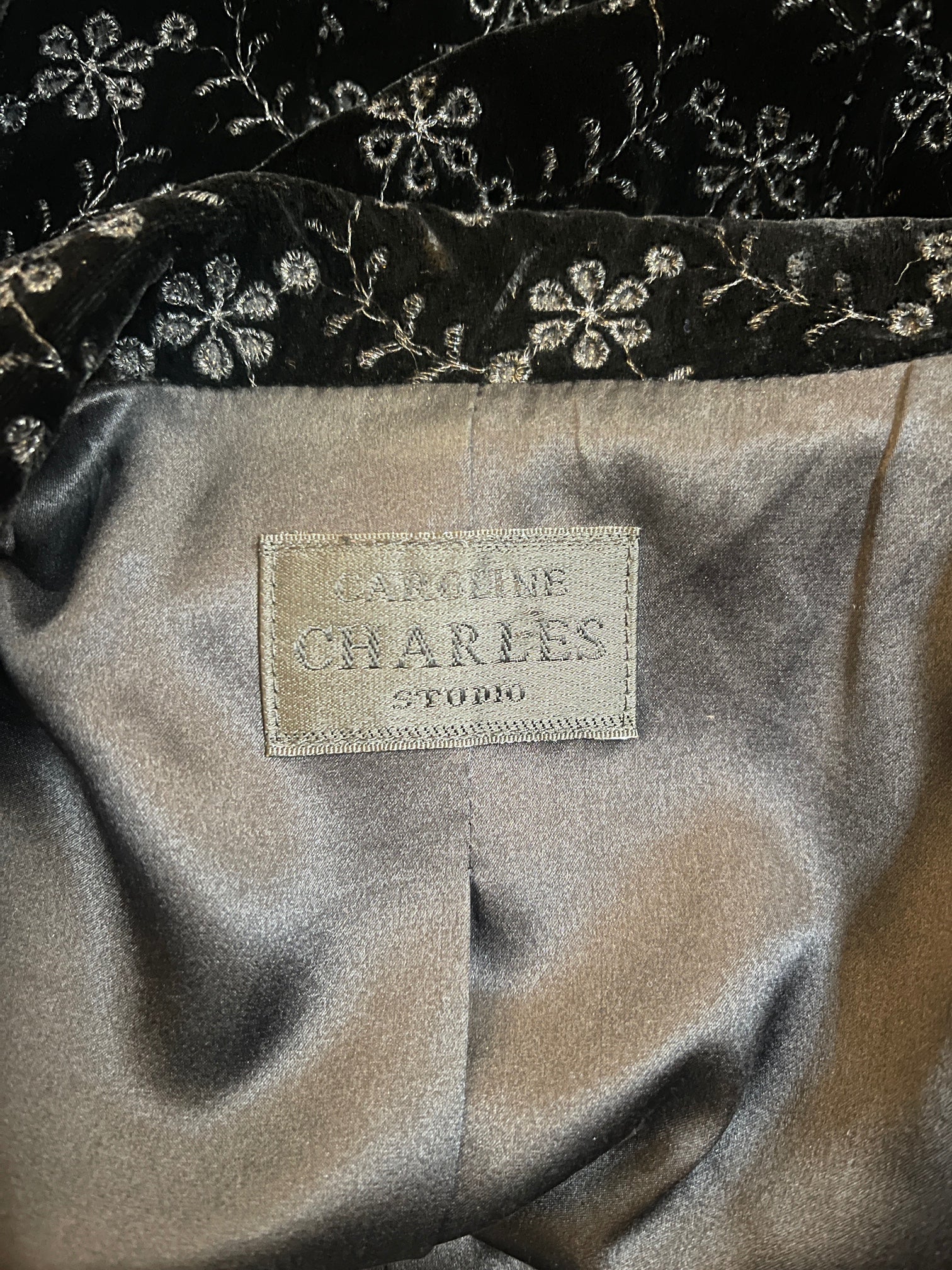 1989 Caroline Charles Documented Black Velvet Long Jacket