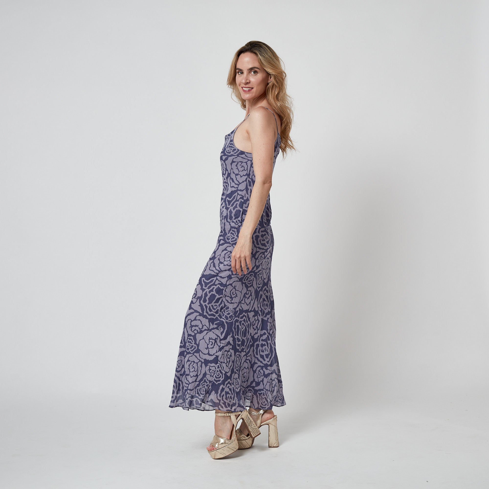 1990s Perry Ellis Silk Rose Print Slip Dress