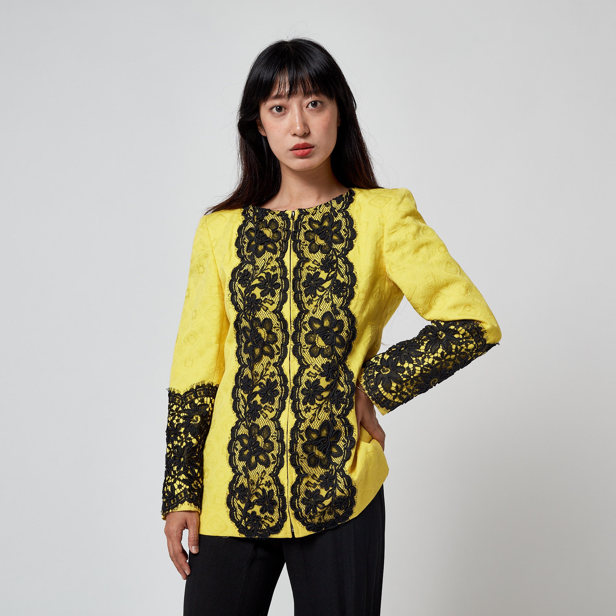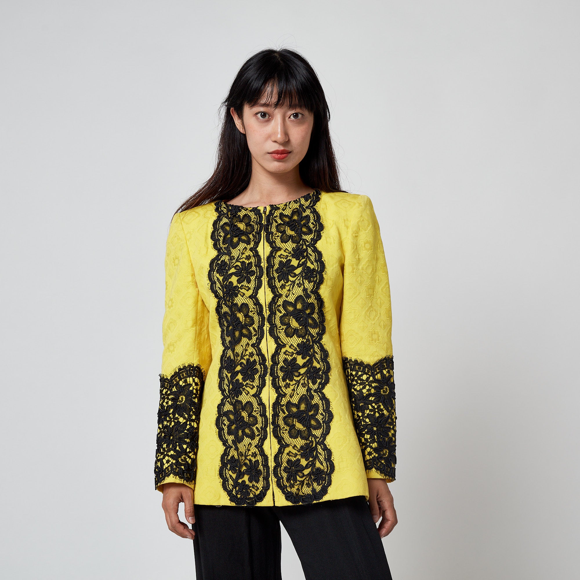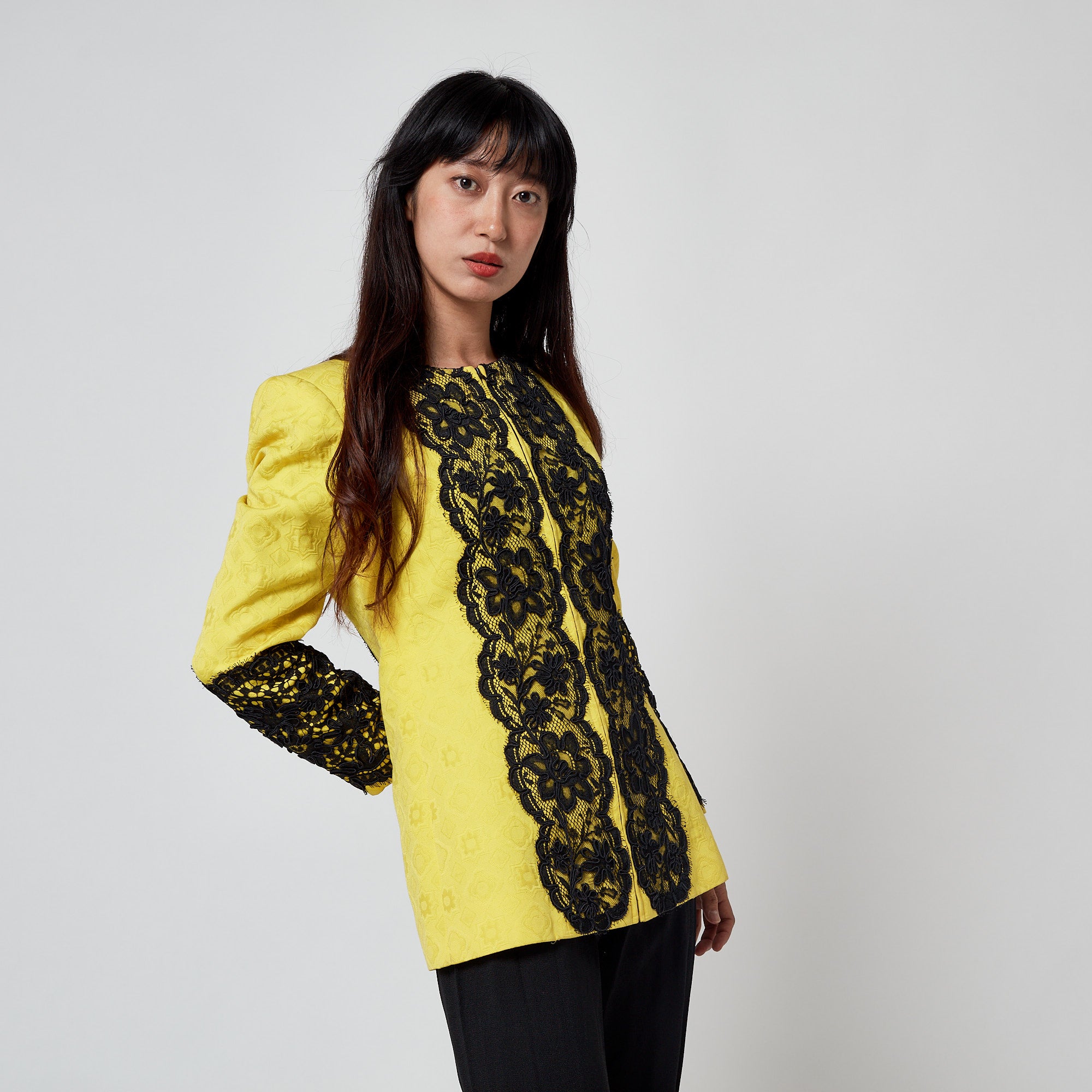 1991 Christian Lacroix Runway Yellow Jacquard Jacket with Black Lace