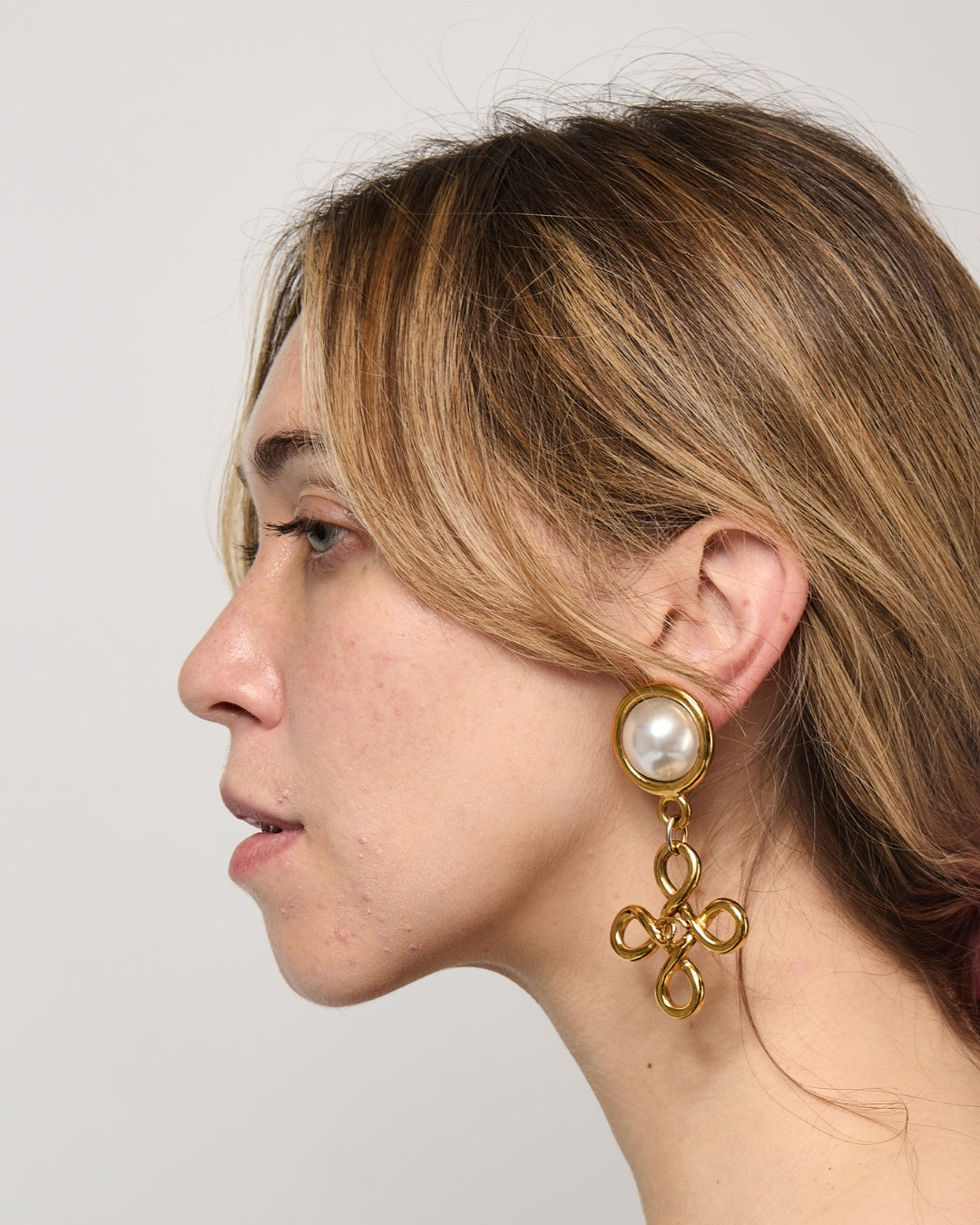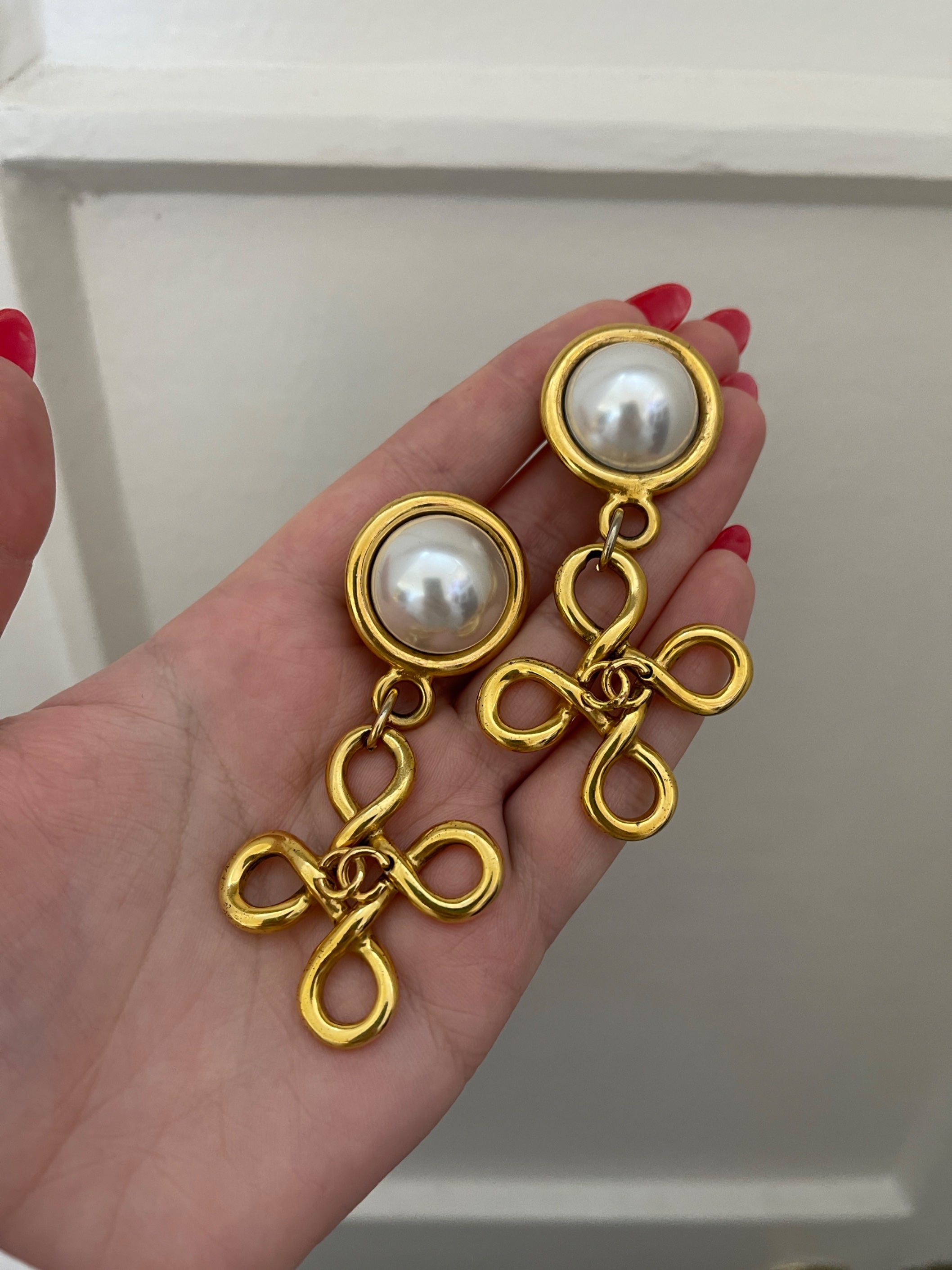 1993 Chanel Gold and Pearl and Quadrafoil Drop CC Earrings