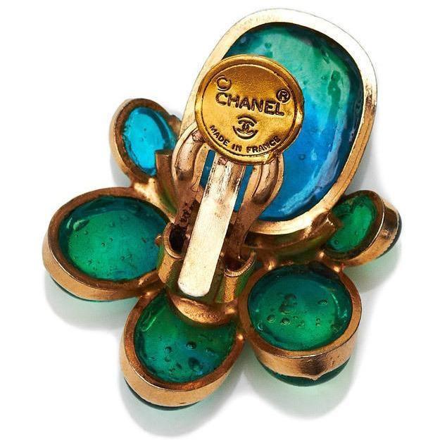 ARCHIVE - 1970s Haute Couture Chanel Green Gripoix Glass + Rhinestone Necklace Earrings Set