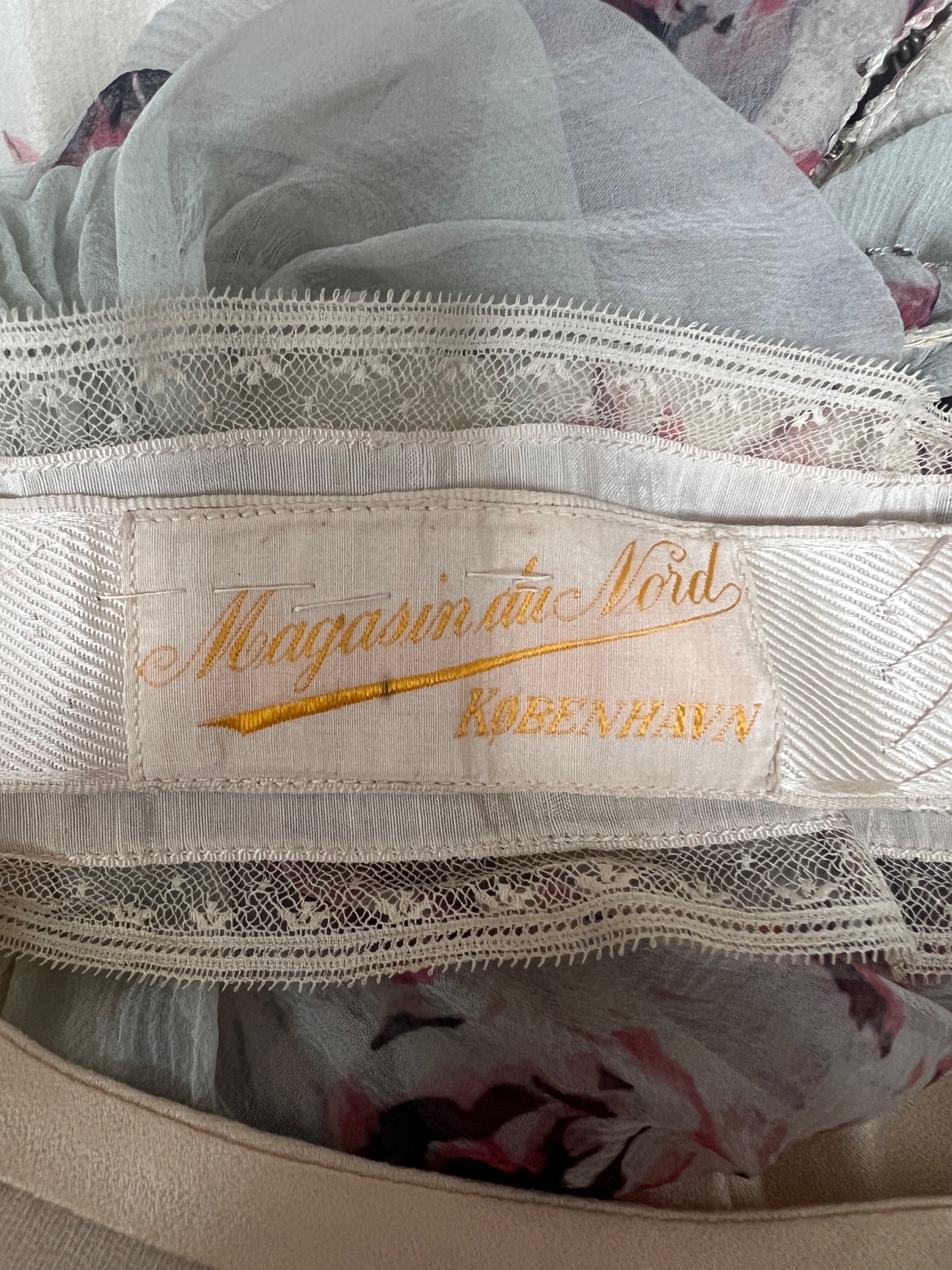 This 1920s ethereal dress would be perfect for a bride looking for something a little different for their special day or a true lover of clothing from this period. The dress was retailed in Denmark's most exclusive and fashionable department store, Magasin du Nord, which dates all the way back to 1869. The store may have imported the piece from a couture house in France as it is beautiful quality.